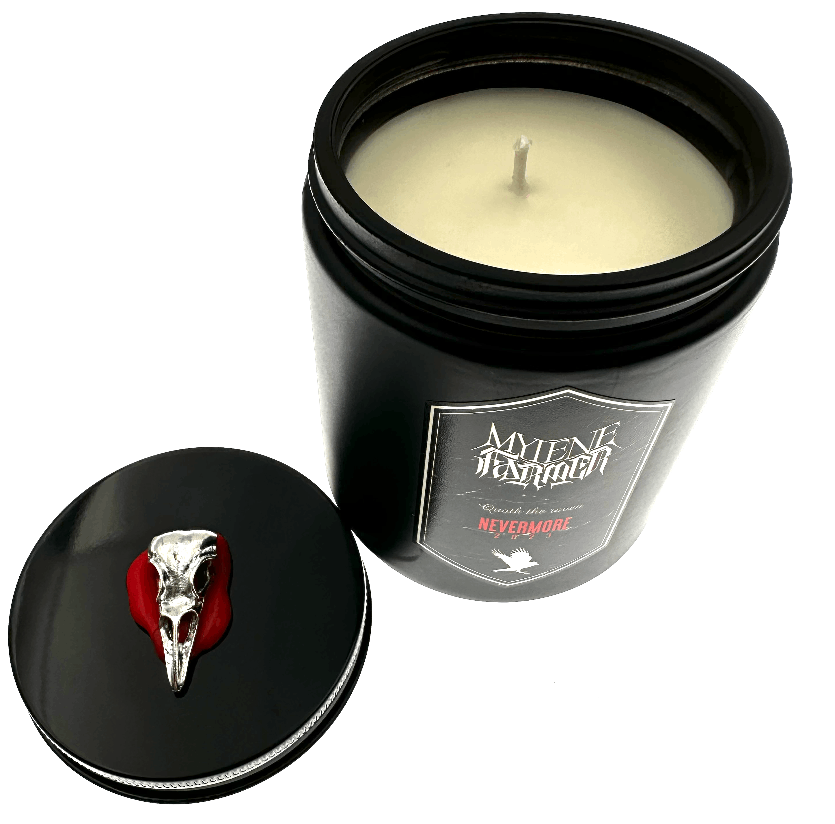 Bougie et son couvercle, disponibles lors de la tournée Nevermore 2023 au prix de 30€.