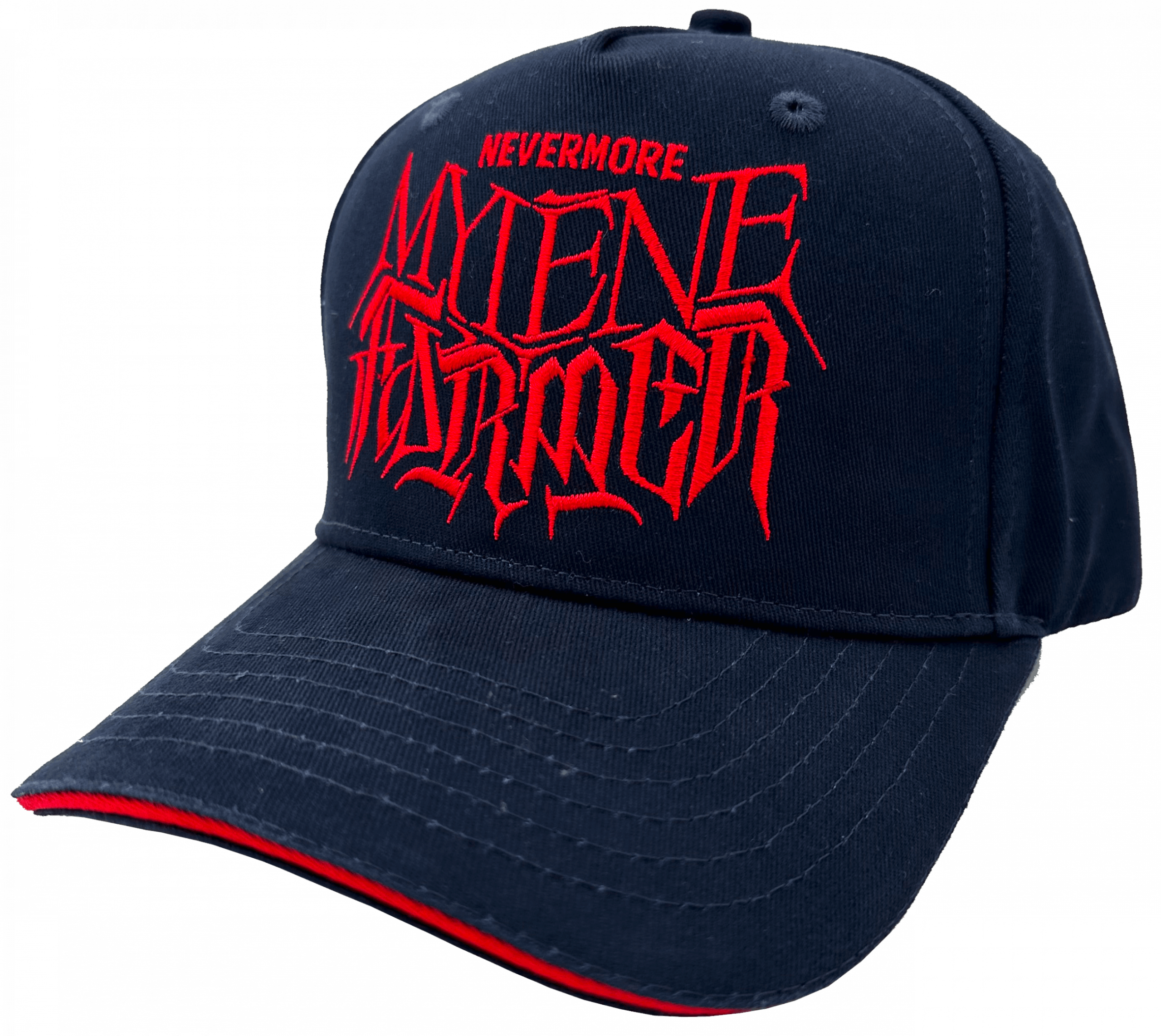 Casquette noire avec logo « Nevermore Mylène Farmer » brodé en rouge, taille unique.