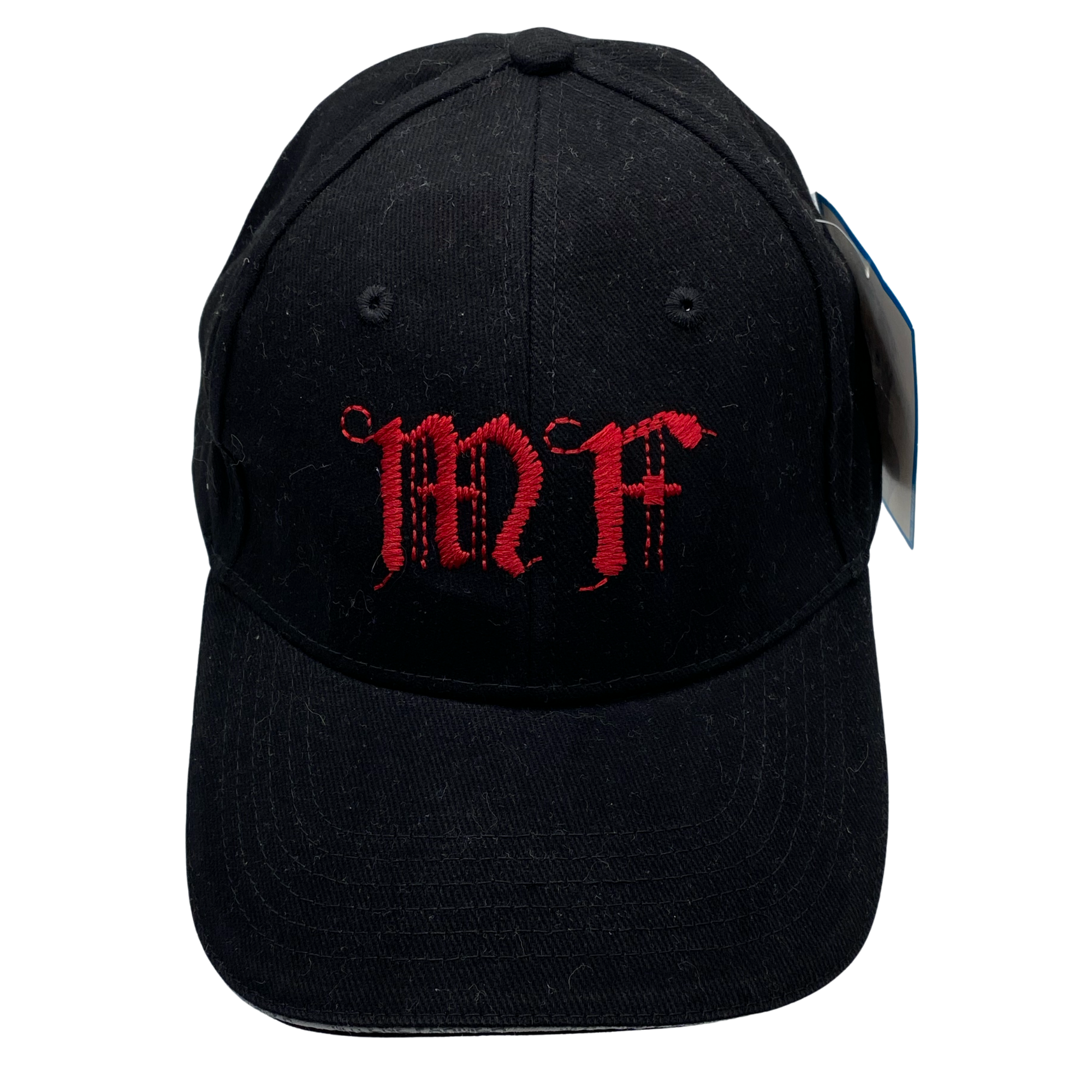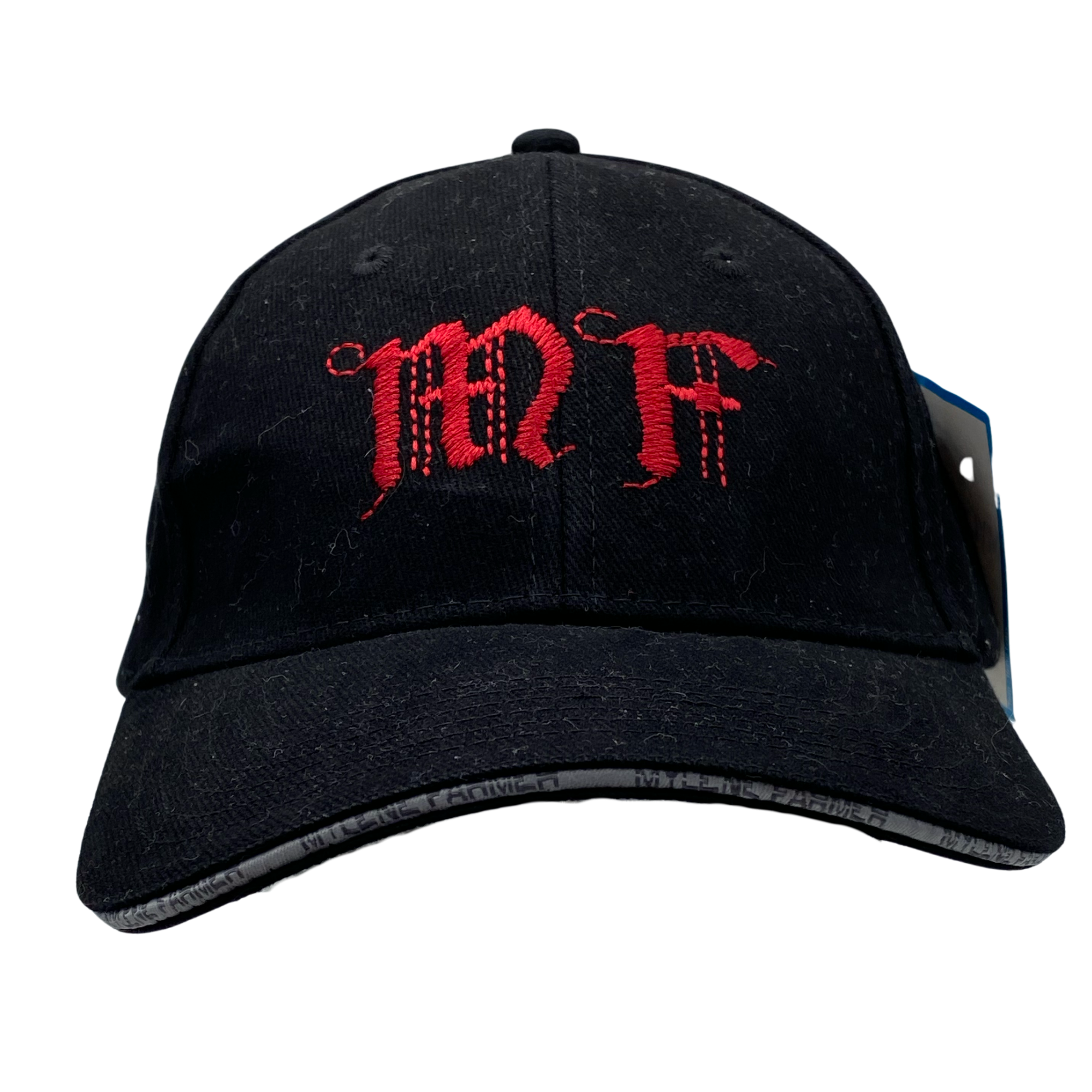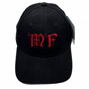 La casquette noire avec une broderie MF. Sur l’épaisseur de la visière, une impression de la typo Mylène Farmer. C’est une casquette 5 panneaux avec un scratch de réglage au dos, des bandes de renforts à l’intérieur Imprimées MF et une petite étiquette rouge tissée : Mylène Farmer – Timeless 2013.