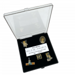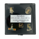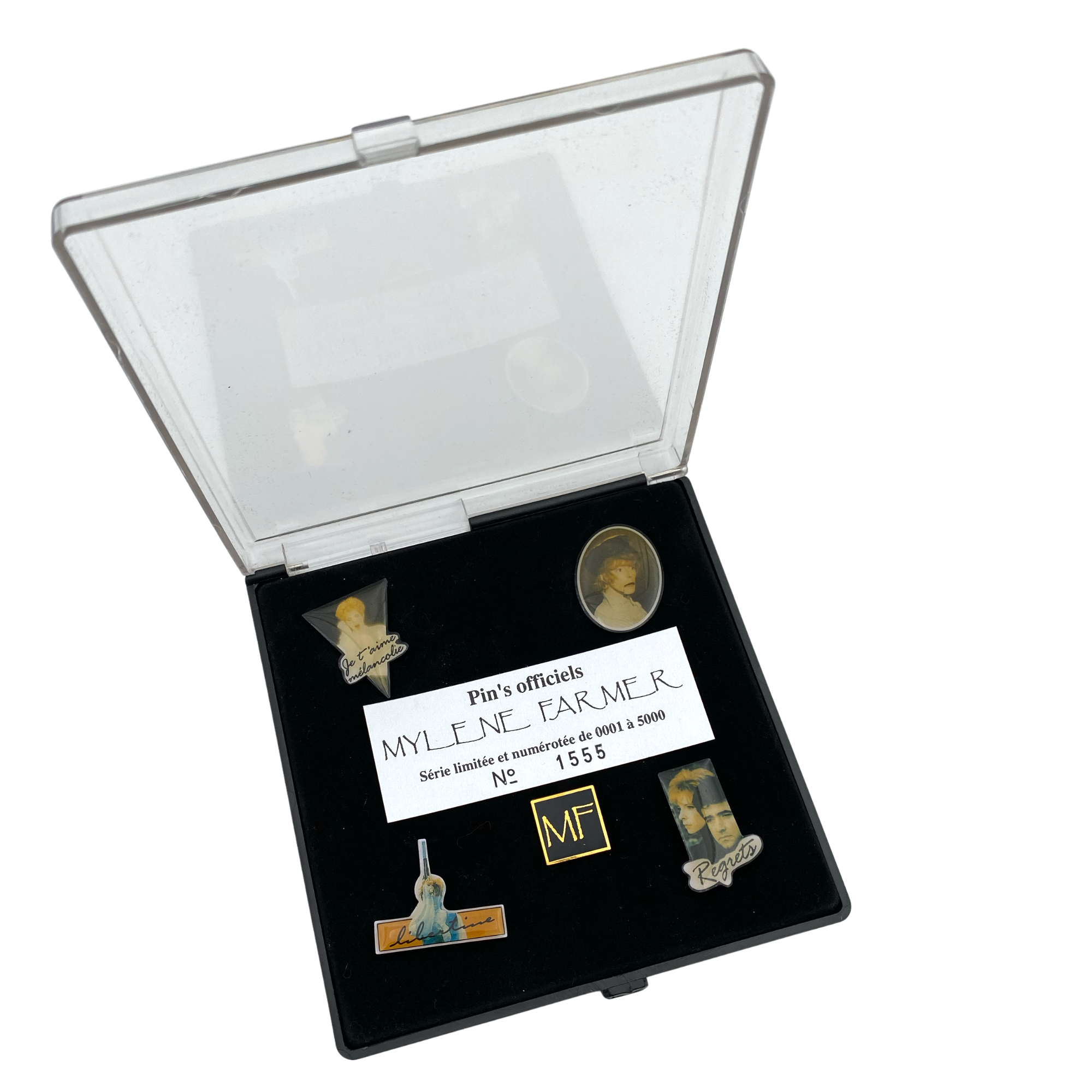 Coffret contenant 5 pin’s « Mylène Farmer ». Série limitée et numéroté à 5000 exemplaires.