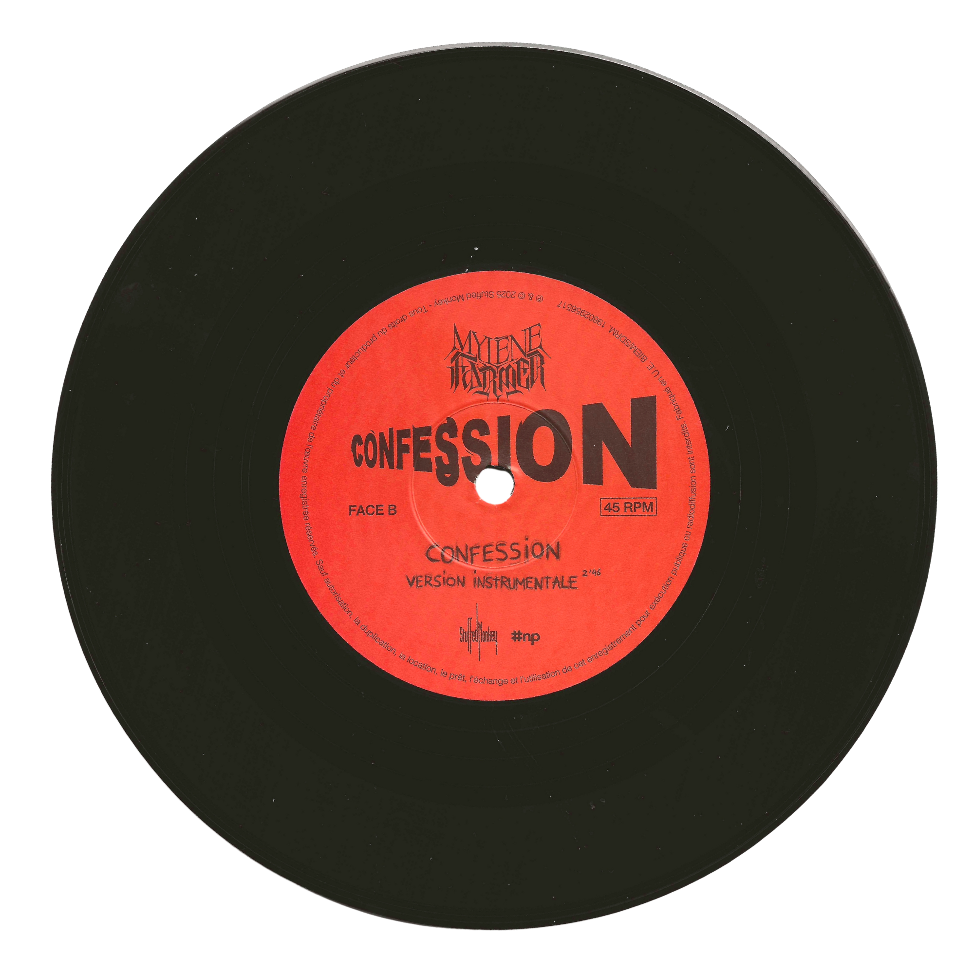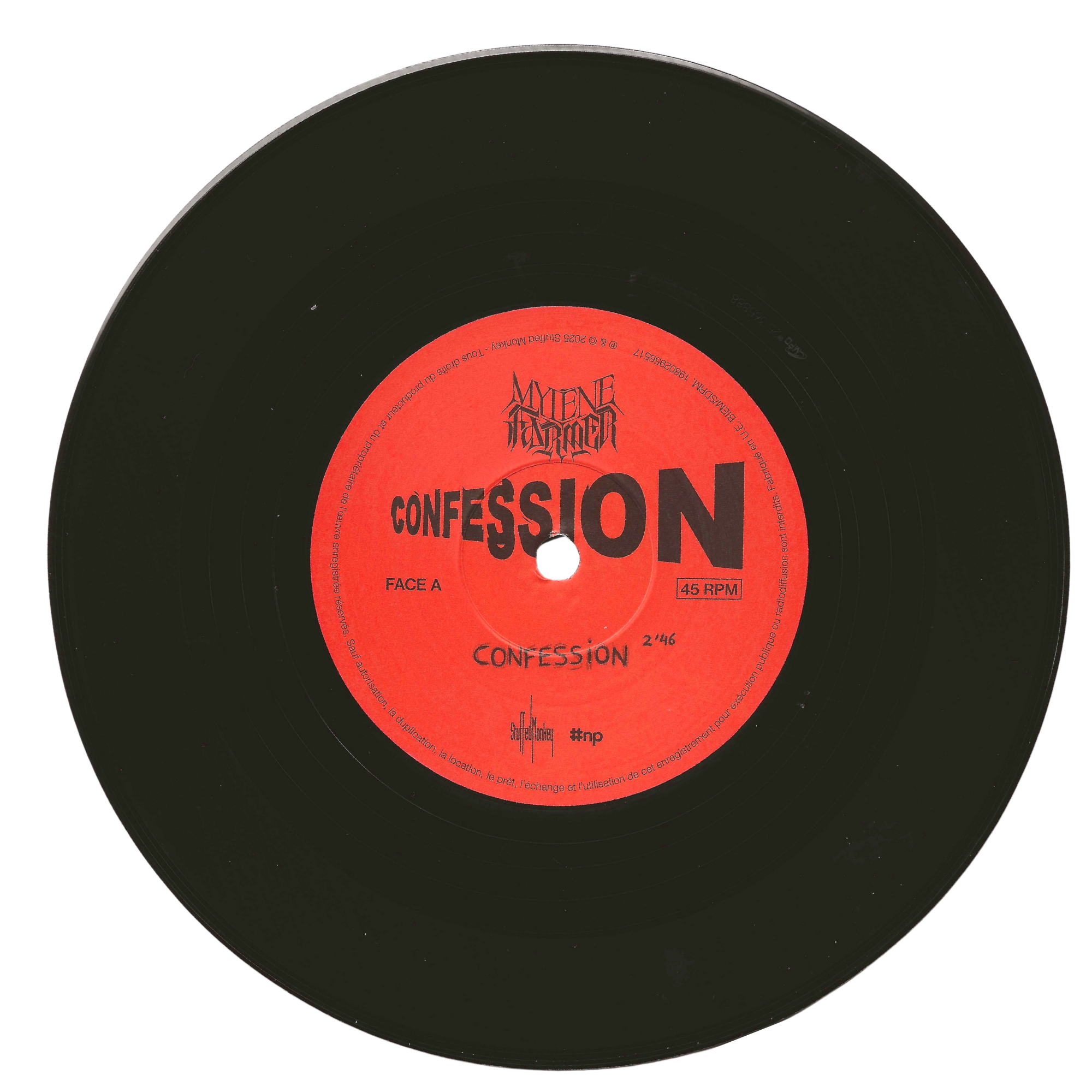 Édition limitée 45 tours du single Confession, pressée en France en 2025.