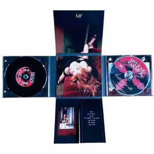 « Mylène Farmer » écrit en rouge sur la tranche