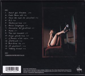 Mention au verso : “CD 2 – Versions Instrumentales” et des mentions légales 2021. Ombre blanche sur le logo « Mylène Farmer » de la pochette, teintes des labels claires.