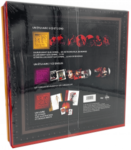 1 dépliant (5CD+2DVD) : l’album studio + le live audio + les versions instrumentales + les remixes + le live vidéo + des bonus video ;