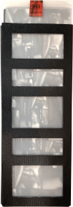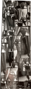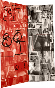Fourreau noir effet cuir écaillé duquel dépasse deux feuilles de calque scellées par un autocollant estampillé « MF » A l’intérieur se trouve un dépliant en carton épais s’ouvrant en trois parties, avec le volant gauche, à nouveau découpée en 3 volets Format : 15 cm x 40 cm X 1 cm