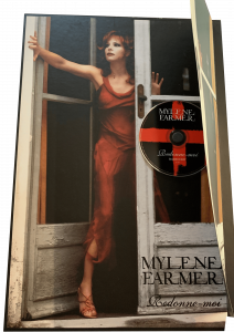 Enveloppe estampillée « Mylène Farmer » scellée par un cachet de cire rouge frappé des initiales « MF ». Contient une planche en carton épais imprimée de la même photo au recto et au verso. D’un côté, un petit rabat en carton cache le nom de l’artiste, le titre de la chanson et le CD monotitre. De l’autre, un autre rabat en carton masque les crédits. Format : 47 x 32 cm