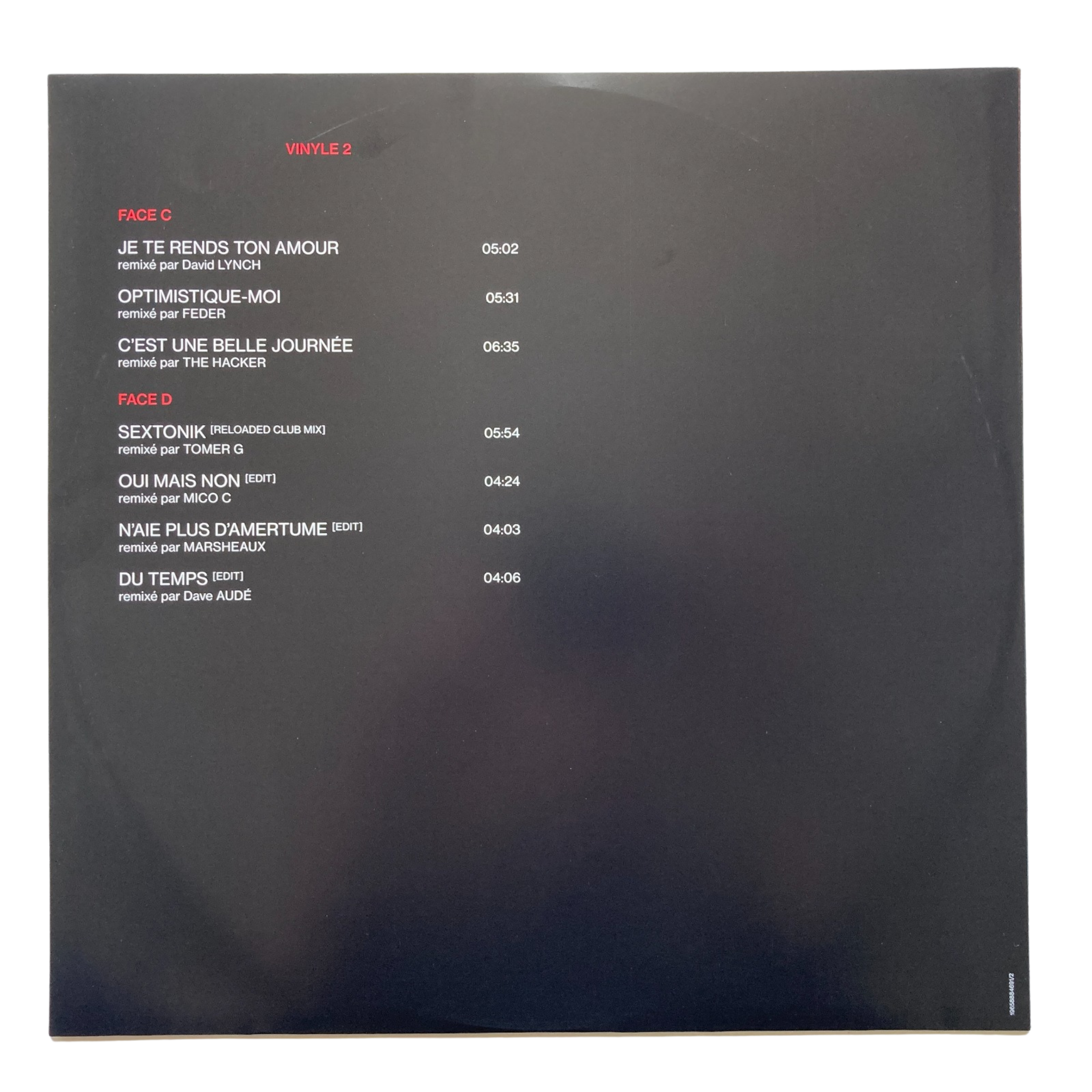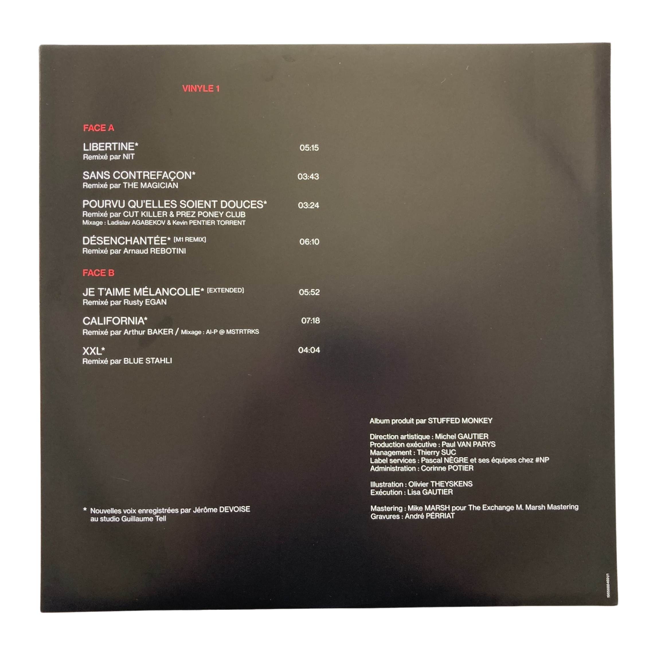 Cette édition standard de RemiXXL comprend trois vinyles noirs emballés dans une pochette gatefold deluxe. Chaque disque est accompagné de visuels réalisés par Olivier Theyskens, reflétant l’univers électro et pop de cette compilation de remixes.