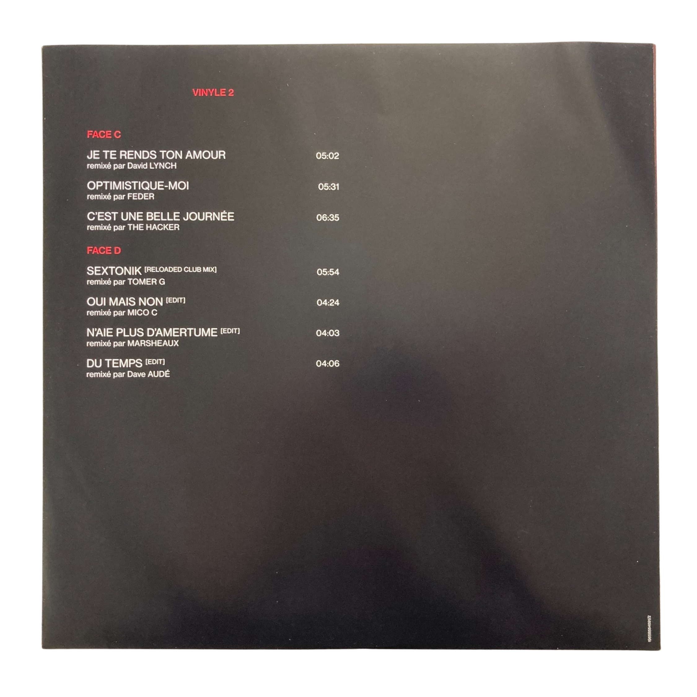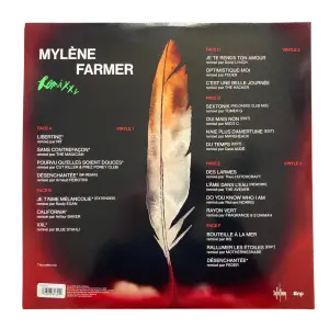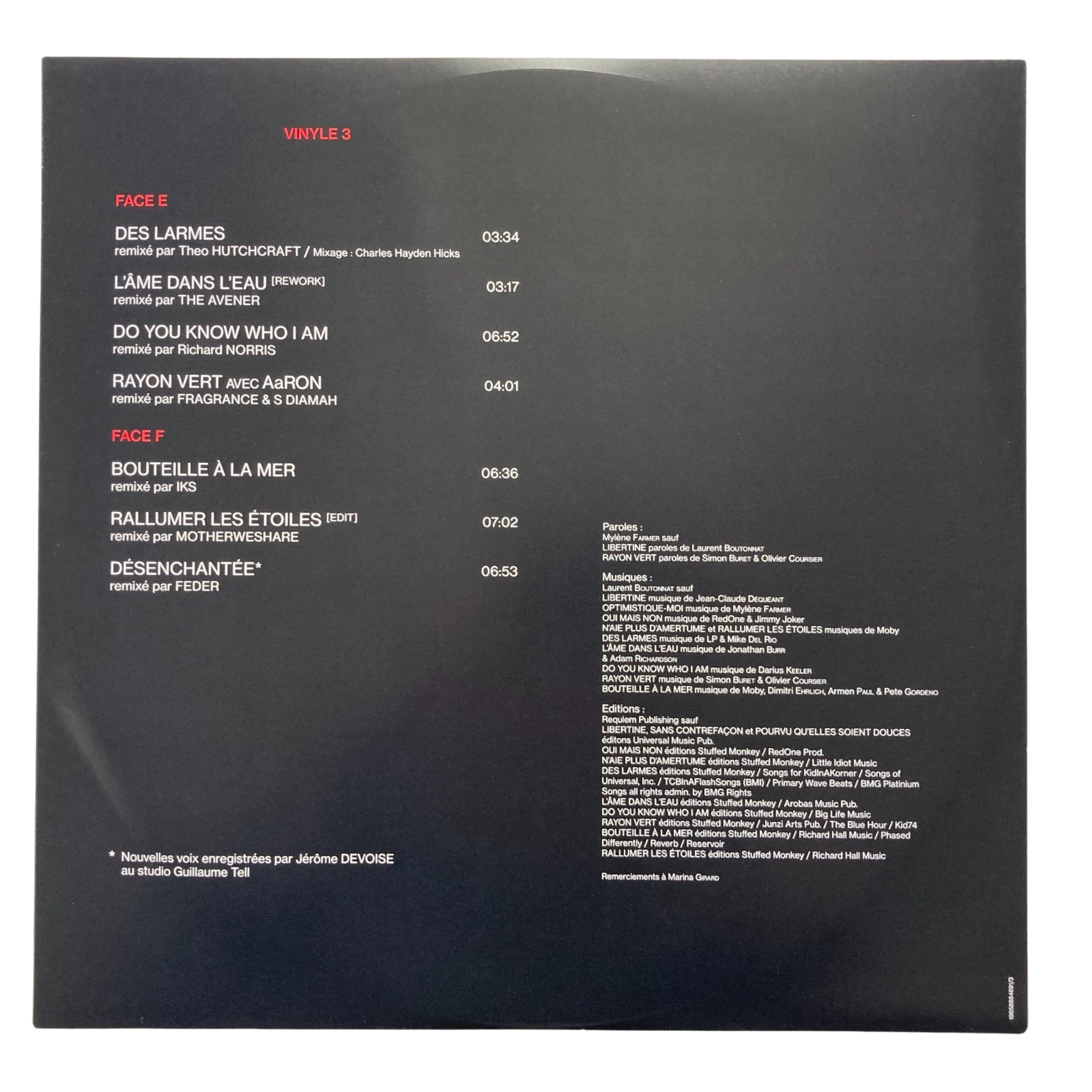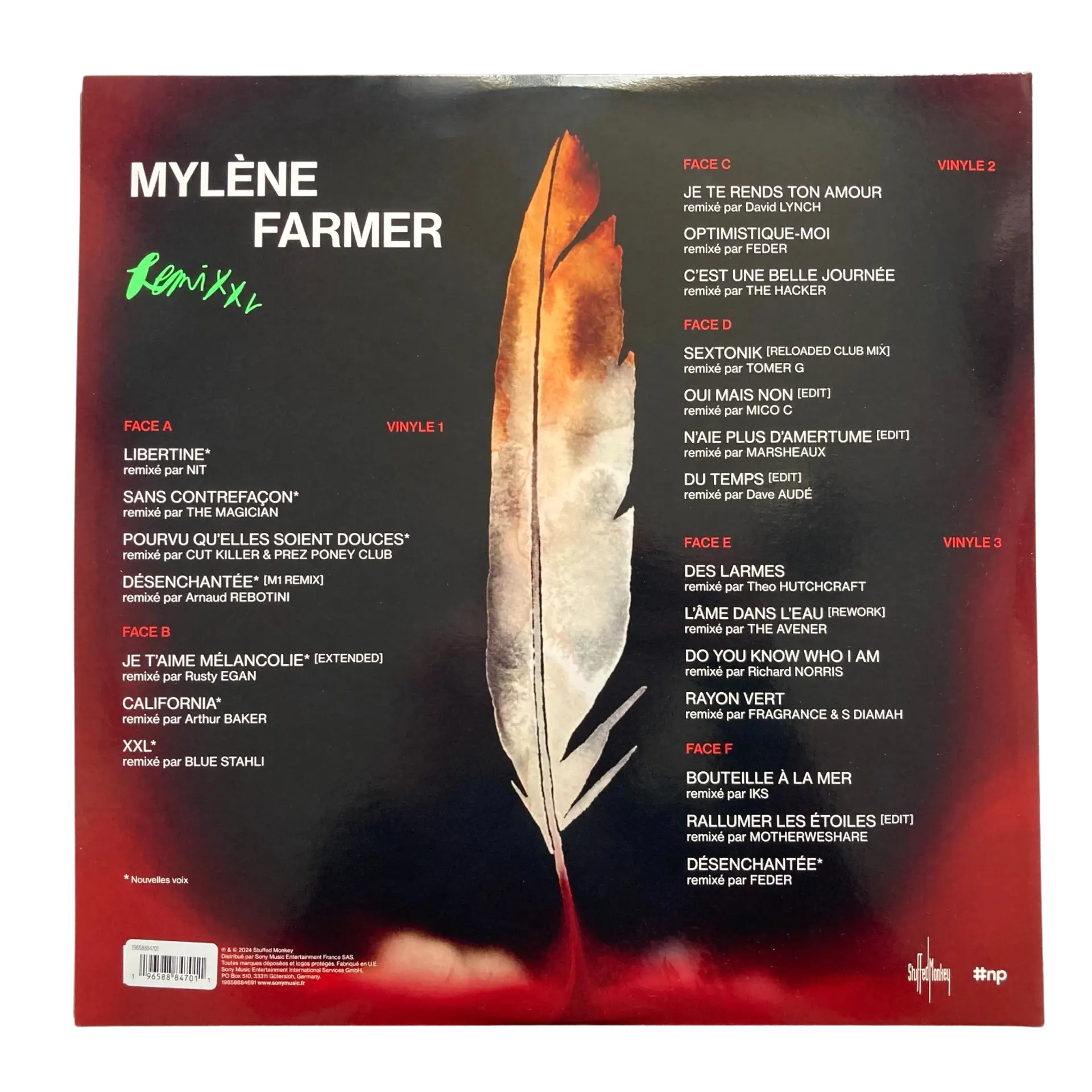 Cette édition exclusive RemiXXL se compose de trois vinyles rouges translucides, soigneusement emballés dans une pochette gatefold deluxe. Chaque disque présente des visuels illustrés par Olivier Theyskens, mettant en valeur les performances iconiques remixées des titres de Mylène Farmer.